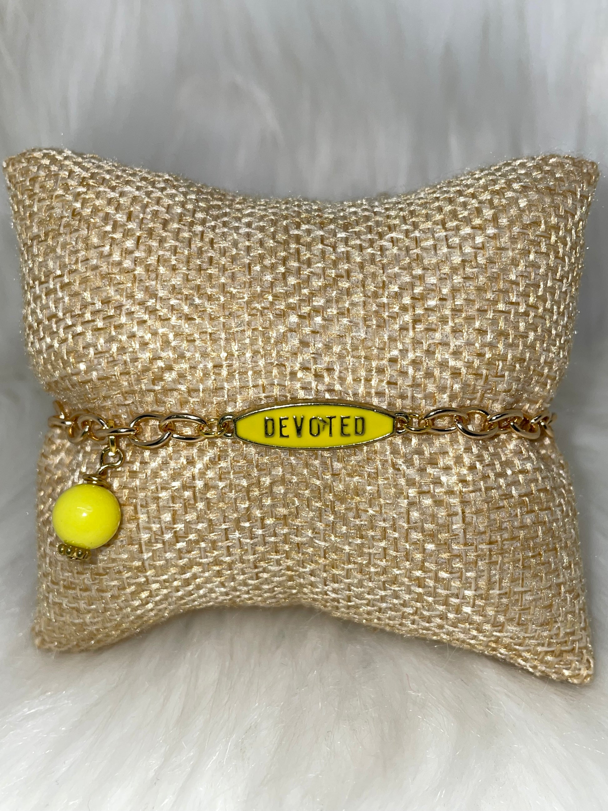 Elevate your style with our DEVOTED Inspiration Bracelet, featuring a stunning chain design anchored by a meaningful focal bead. This eye-catching accessory isn't just beautiful—it's a daily reminder of your devotion to what matters most. Perfect for layering or wearing solo, this versatile piece transitions effortlessly from casual to elegant occasions.
