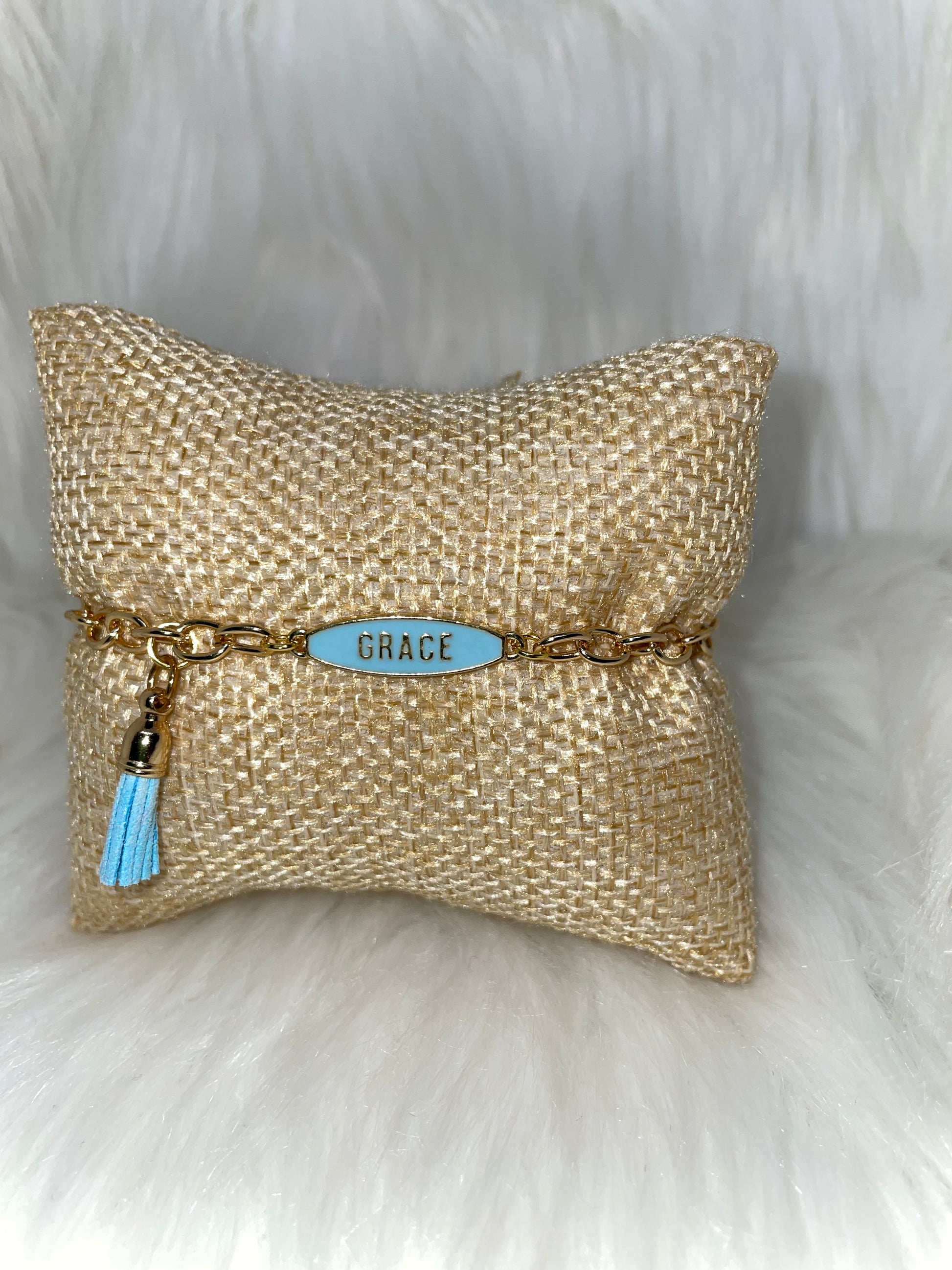 Elevate your style with our GRACE Inspirational Bracelet, featuring a delicate chain design adorned with an elegant grace pendant. This meaningful accessory serves as a beautiful daily reminder of grace in your life while complementing any outfit. The perfect statement piece that combines fashion with inspiration.